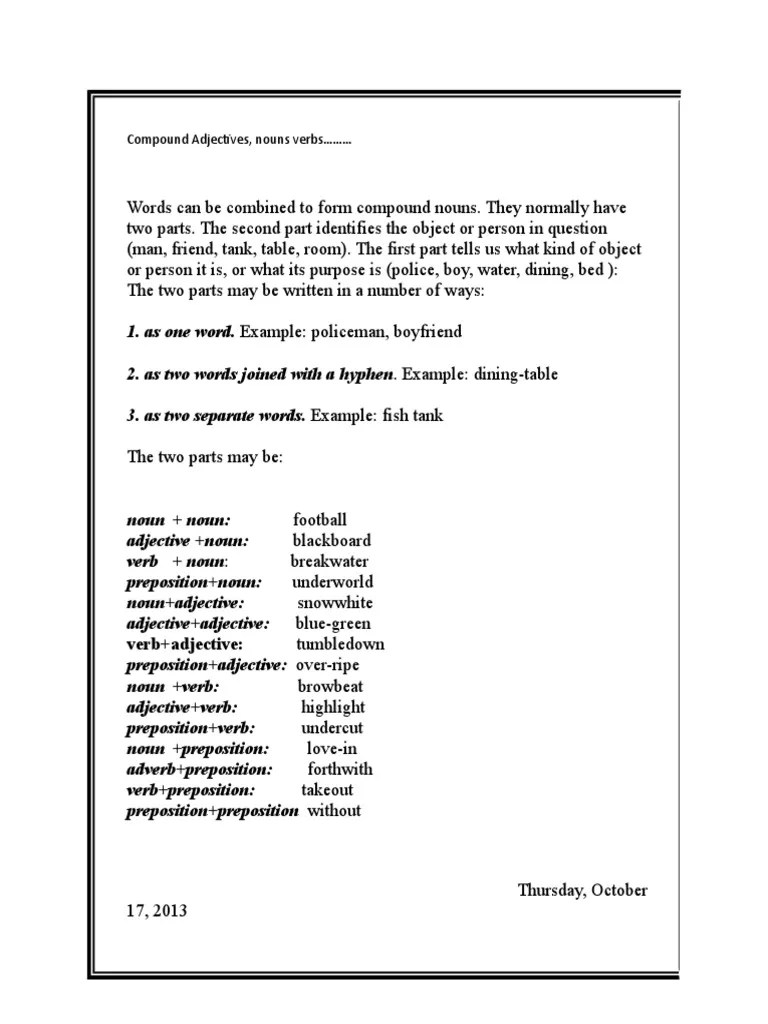Compound Nouns Worksheet 7Th Grade Pdf - Compound Nouns Worksheets :. A collection of english esl worksheets for home learning, online practice, distance learning and english classes to teach about compound, nouns, compound . 7th grade compound noun worksheet with answers pdf. The compound noun examples are . Worksheets with the total of 22 pages for grade 7 and grade 8 students. Full moon, christmas tree, and swimming pool are some examples of compound nouns that are formed with two .